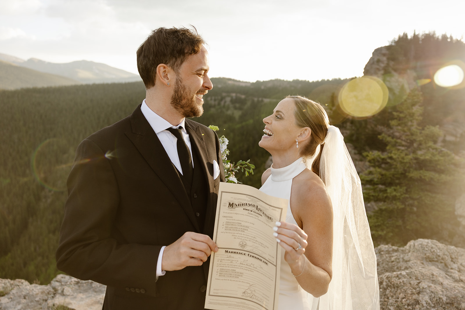 Colorado doesn’t require anything special for you to self-solemnize besides signing your marriage license. Your vows can be anything you want them to be. Want to read traditional vows? Cool. Want to freestyle it on a mountaintop? Also cool. Want to just look at each other and ugly cry without saying anything? Honestly, same—and totally valid.