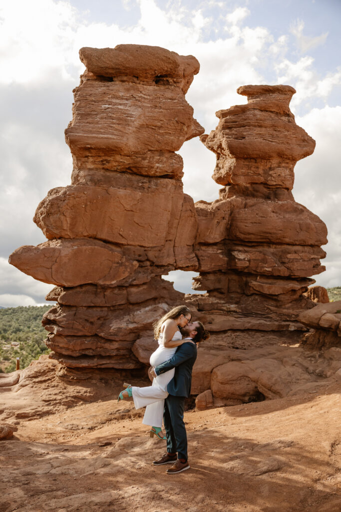 Why it’s perfect: Garden of the Gods has a handful of designated ceremony sites within the park and none of them require a permit for elopements under 25 people. The red rock formations against Pikes Peak are absolutely iconic. You can drive right up to multiple pull-offs and be steps away from stunning backdrops. You are able to explore throughout the park in your wedding attire afterwards for more portraits!