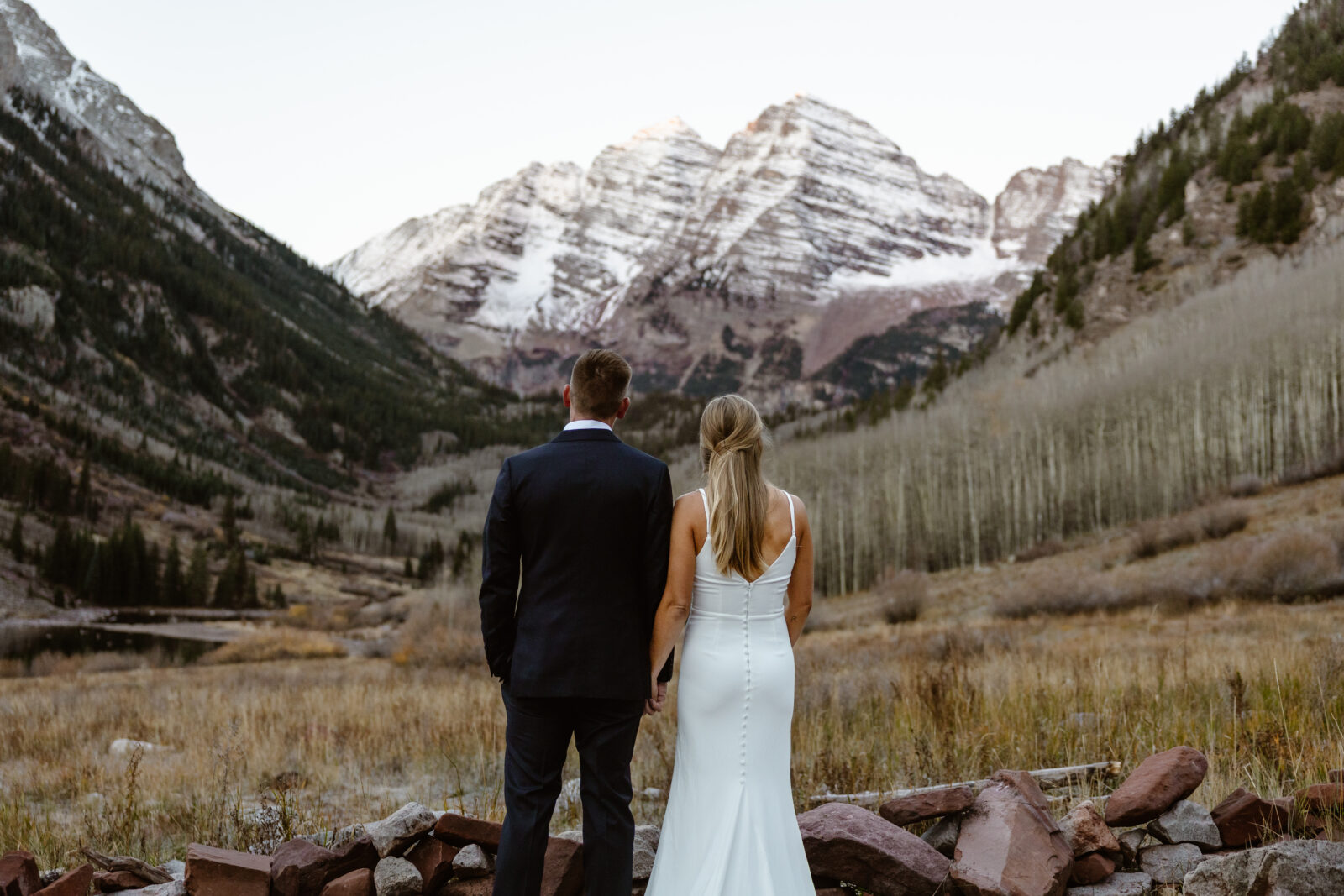 Why it’s perfect: The Maroon Bells Amphitheater is the iconic Colorado elopement location – and you don’t need to hike to get there. It’s literally right there when you get off the shuttle. The twin peaks reflecting in Maroon Lake? Chef’s kiss. Also, chances of seeing a moose are high here.